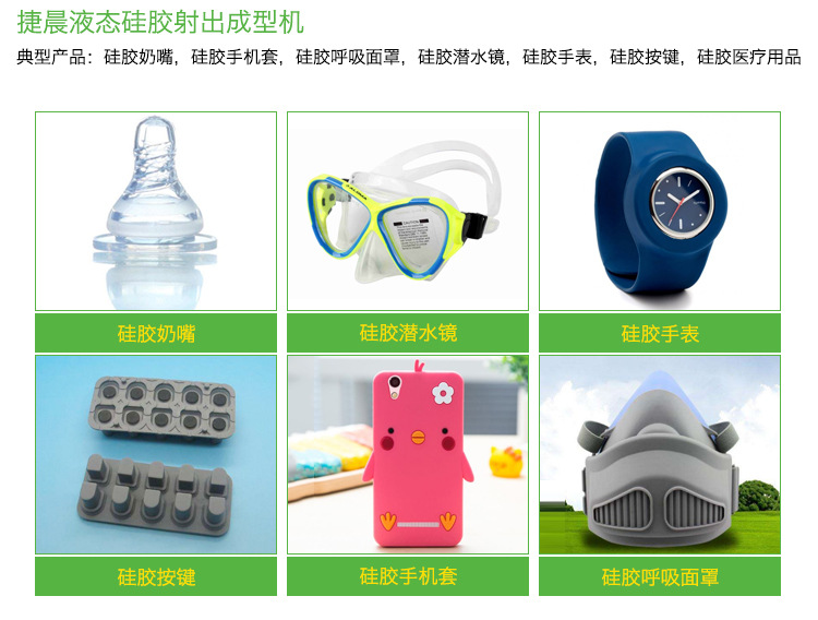 捷晨等离子态硅橡胶射出来压延成形机 臭街终产物:硅橡胶制品制品制品奶嘴,硅橡胶制品制品制品华为手机套,硅橡胶制品制品制品吸面具,硅橡胶制品制品制品潜水镜,硅橡胶制品制品制品女表,硅橡胶制品制品制品键盘,硅橡胶制品制品制品医院工具