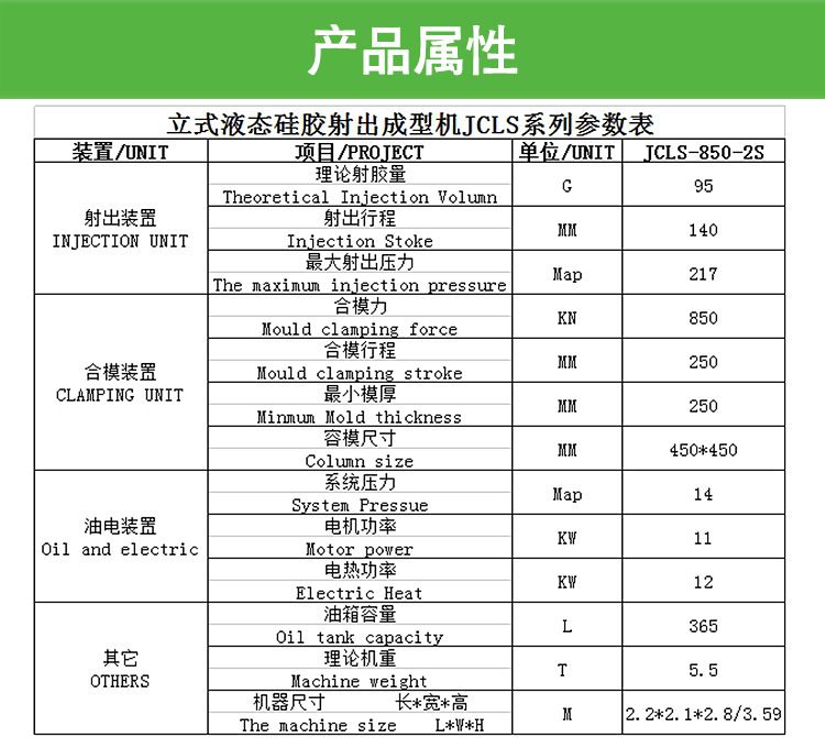 85吨立式液态硅胶射出成型机的产物特色: